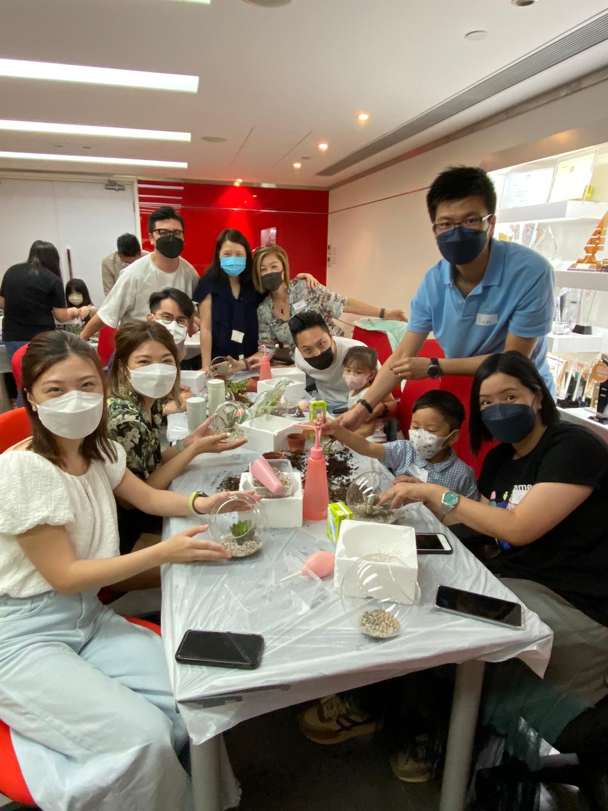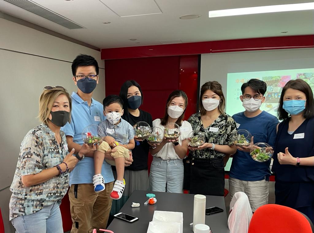 公司於6月18日舉行了父親節幸福小花園工作坊,希望同事可以親手製作小盆栽送俾辛勤嘅爸爸,當日同事們更帶同家人一同參與,大家都玩得好開心。公司亦希望可以藉著製作小盆栽的過程減輕同事生活上的壓力,為生活增添綠色元素,令大家感受植物嘅生命力,而小盆栽慳位又易打理,辦公室同屋企都適合擺放。